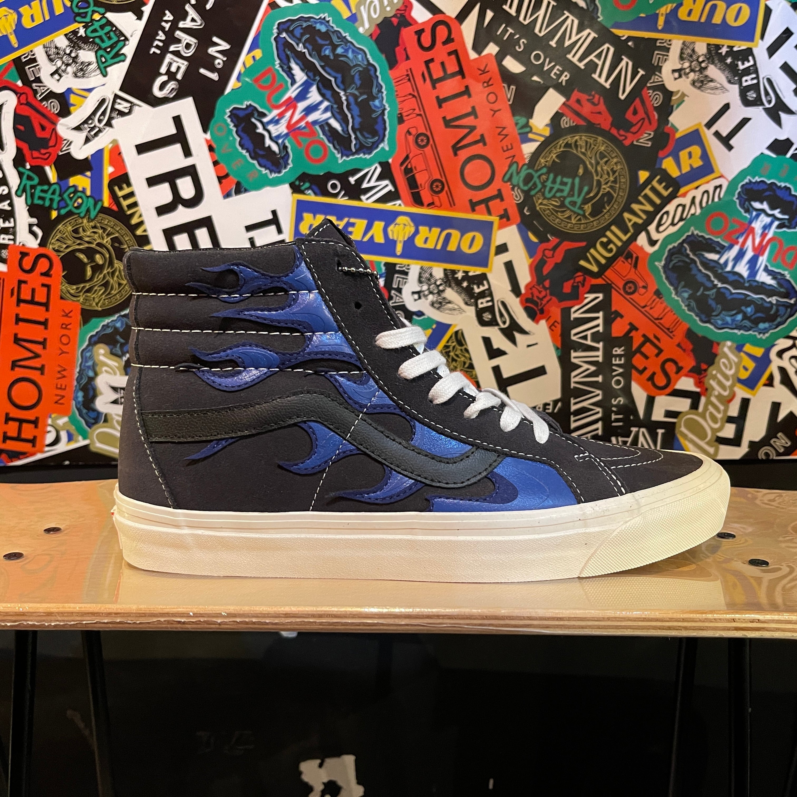 VANS ''Layered Flame'' Vans Anaheim Factory (ヴァンズ アナハイム ファクトリー) シリーズ。 王道のフレイムパターンをレザーで表現した重厚感のあるデザイン。 全体はかなり暗めなネイビーカラー。 国内展開の無かったシリーズになります。 28cm / US 10 新品未使用