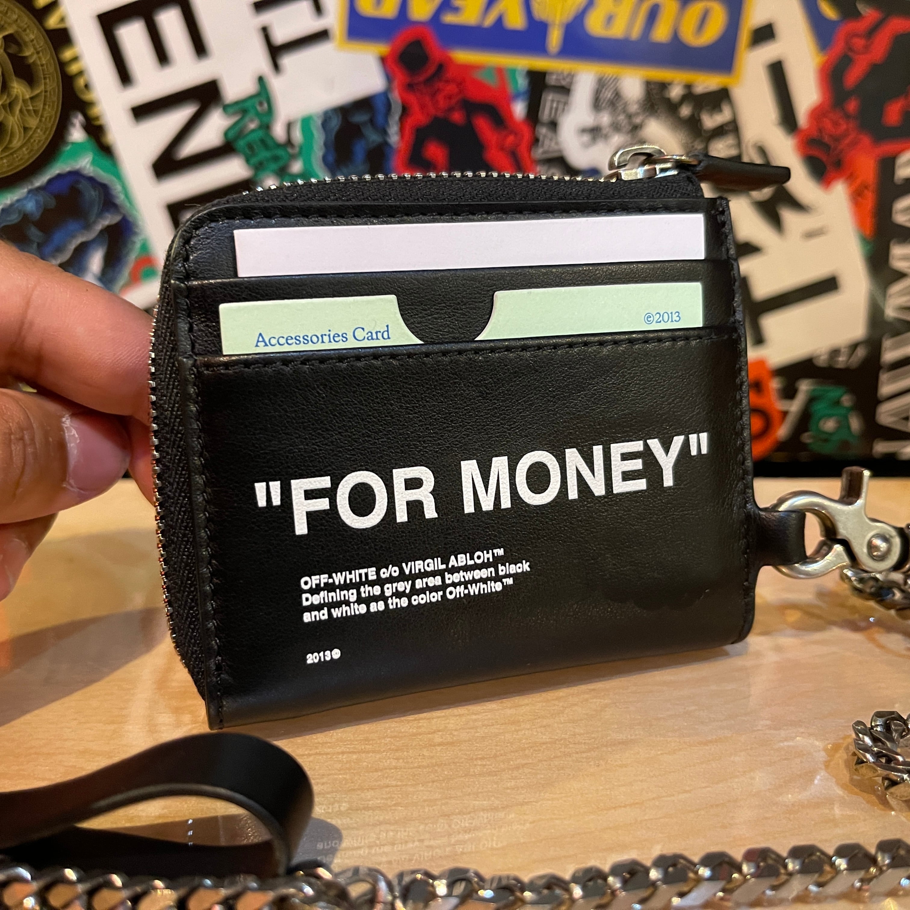 OFF-WHITE 'QUOTE CHAIN WALLET' OFF-WHITEからチェーン付きの財布が入荷。 牛皮を使用したMADE IN ITALYの高級感溢れる商品です。 コンパクトながらも収納力もある財布です。 カラー ブラック サイズ 7 5/8 新品未使用